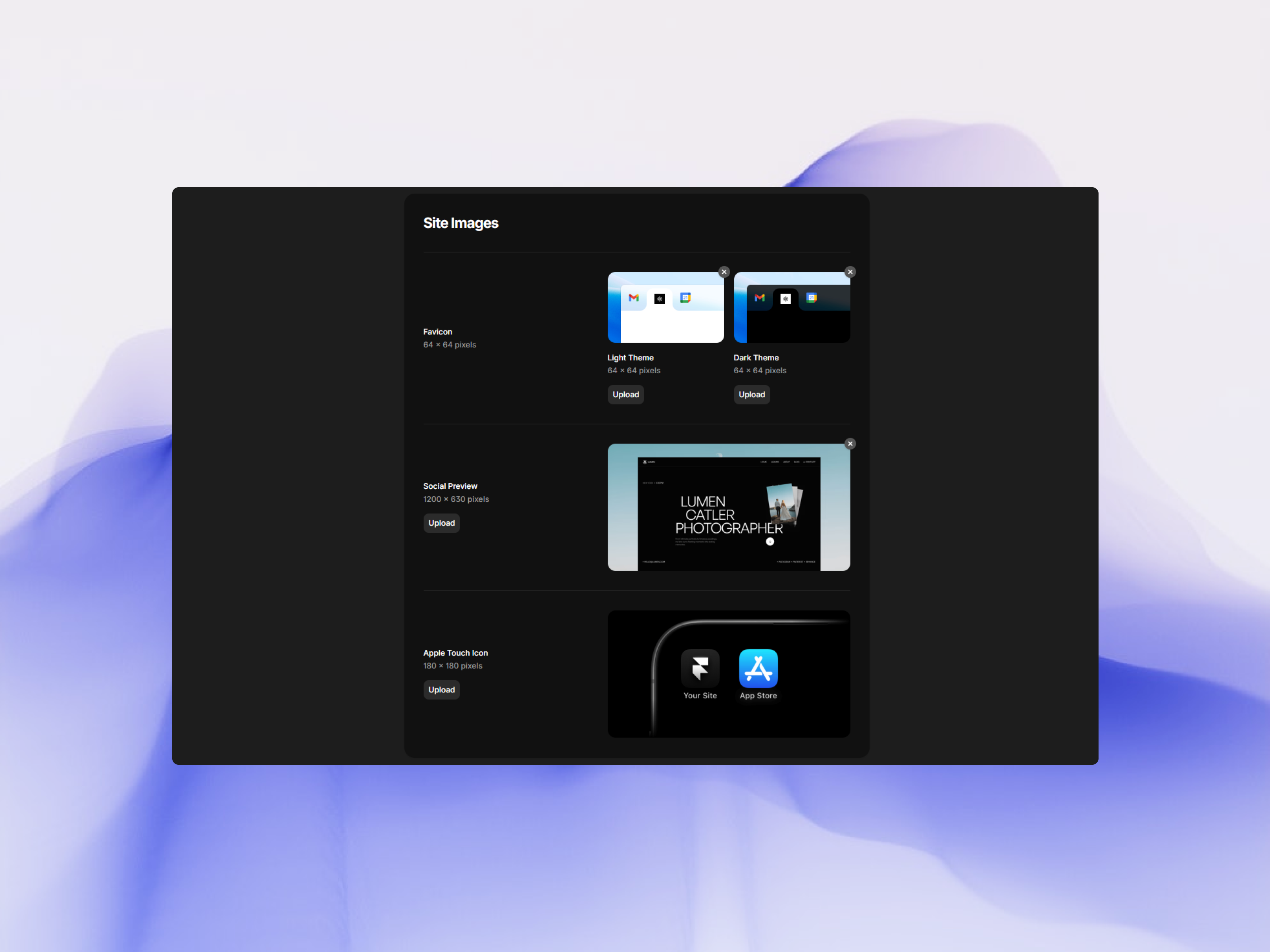 Set a dedicated Site image: