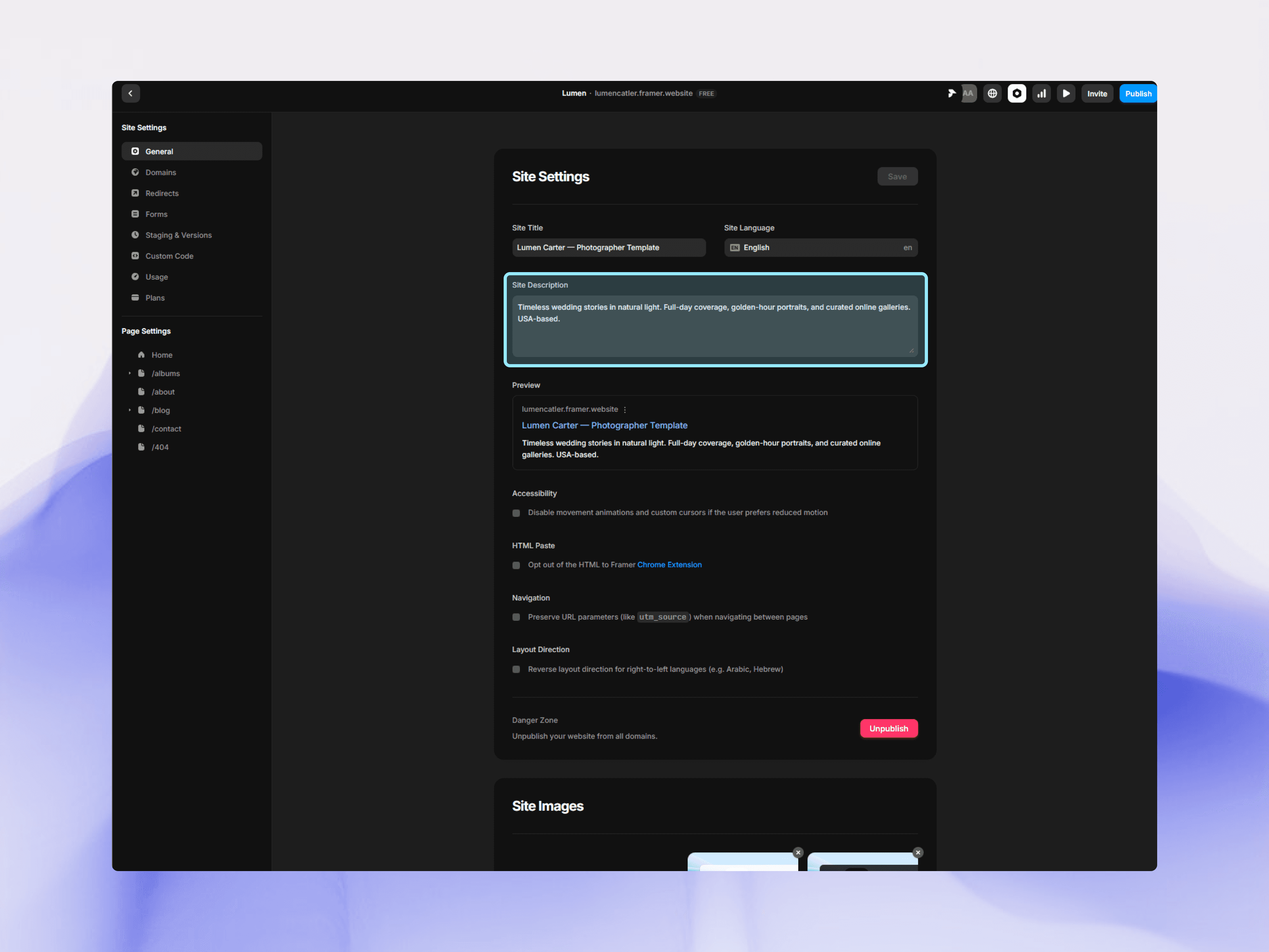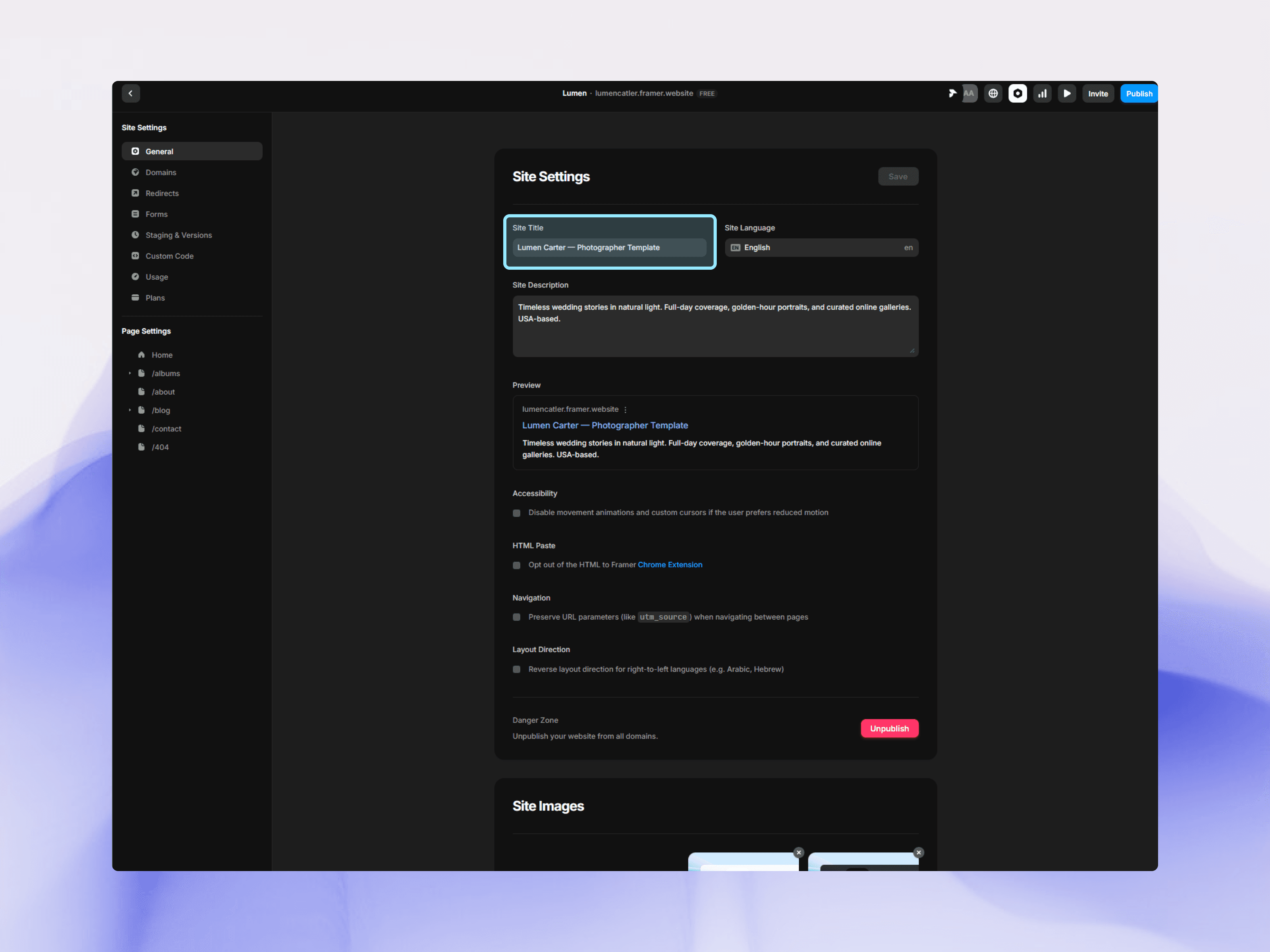 SEO Settings in Framer